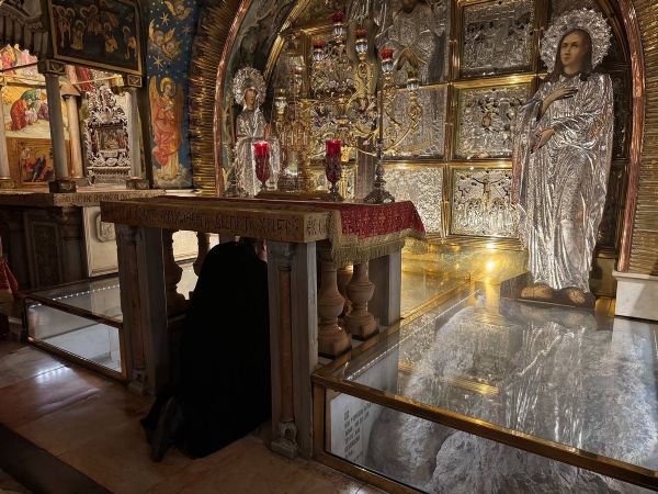 Игумен Марк вместе с главой митрополии помолился на Голгофе и у Кувуклии — той самой небольшой часовни над пещерой погребения Христа, которая является духовным центром всего христианского мира.