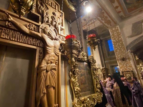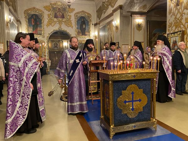 Возглавил богослужение временно исполняющий обязанности наместника монастыря, игумен Марк (Виленский).