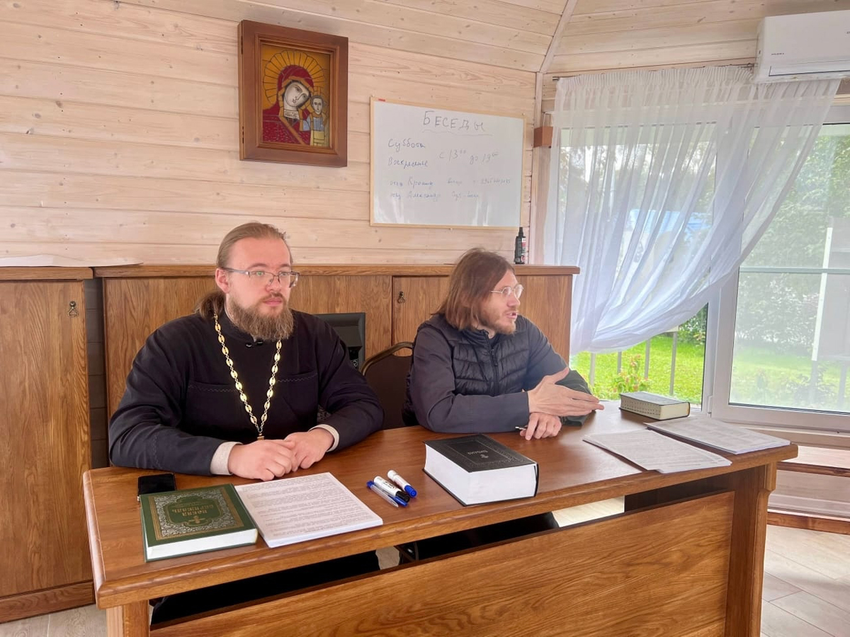 А затем, в уютной Миссионерской беседке, состоялась поистине душевная встреча! Отец Кронид, миссионер монастыря, и отец Александр Ермолин, руководитель Миссионерского отдела Казанской епархии, провели теплую беседу.