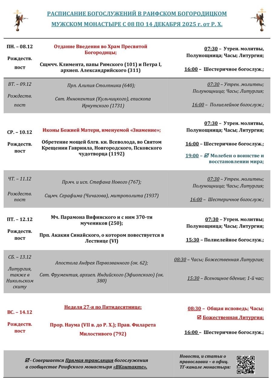 Расписание богослужений