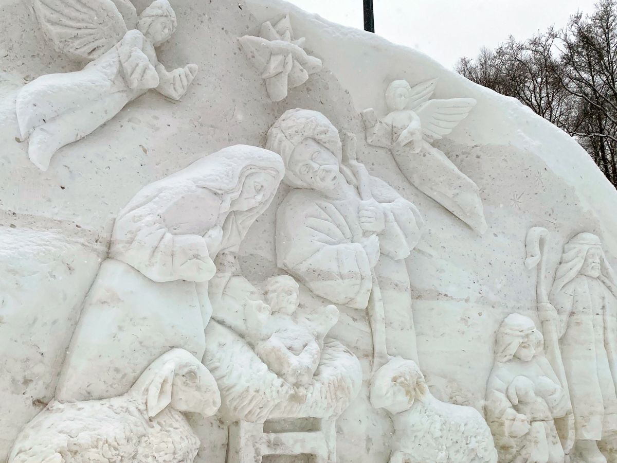 В этом году наше традиционное повествование «Лёд и свет» раскрывается в монументальных снежных образах. Многометровые скульптуры, созданные мастерами, — это живой рассказ о пришествии в мир Спасителя.