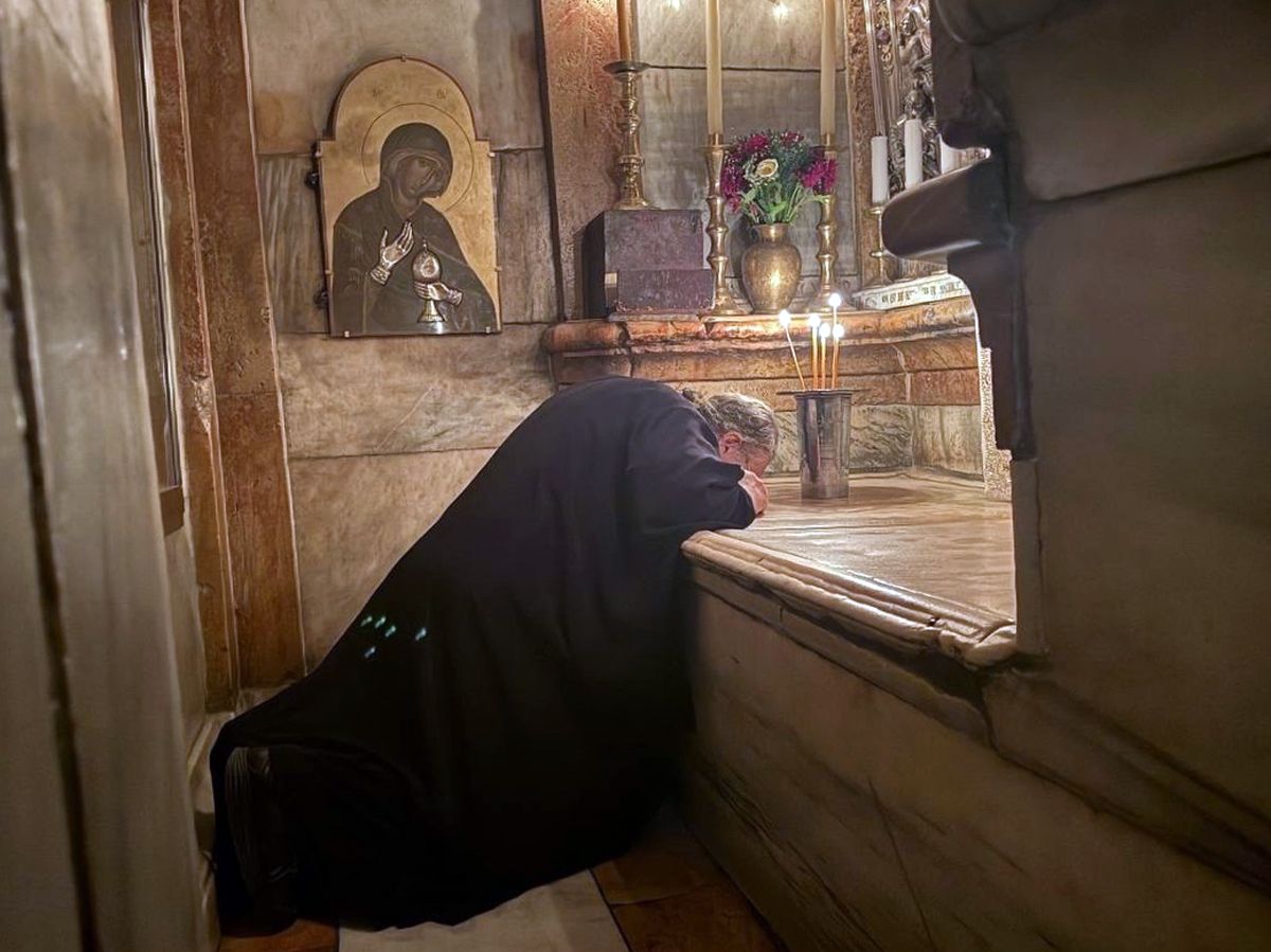 Игумен Марк вместе с главой митрополии помолился на Голгофе и у Кувуклии — той самой небольшой часовни над пещерой погребения Христа, которая является духовным центром всего христианского мира.