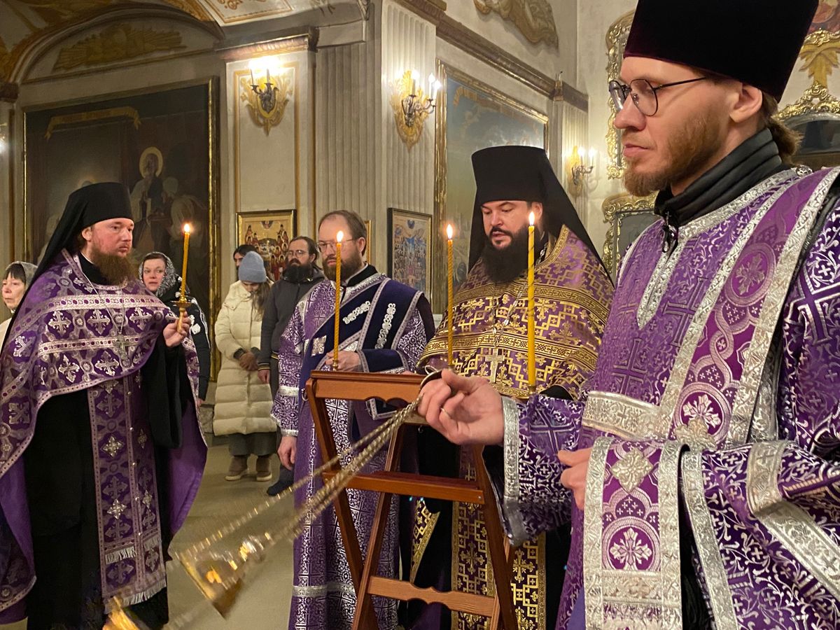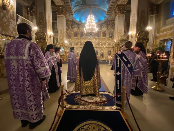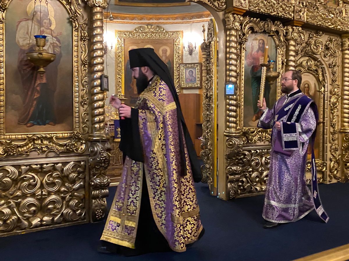 Возглавил богослужение временно исполняющий обязанности наместника монастыря, игумен Марк (Виленский).