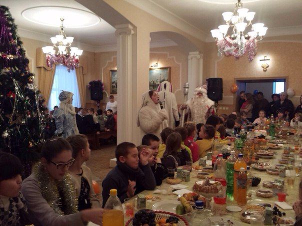 Веселье продолжилось в монастырской трапезной. Здесь артисты из Казани устроили для детей театрализованное представление - своего рода рождественские колядки. После праздничного угощения каждый ребенок, пришедший на елку, получил от наместника монастыря архимандрита Всеволода рождественский подарок.