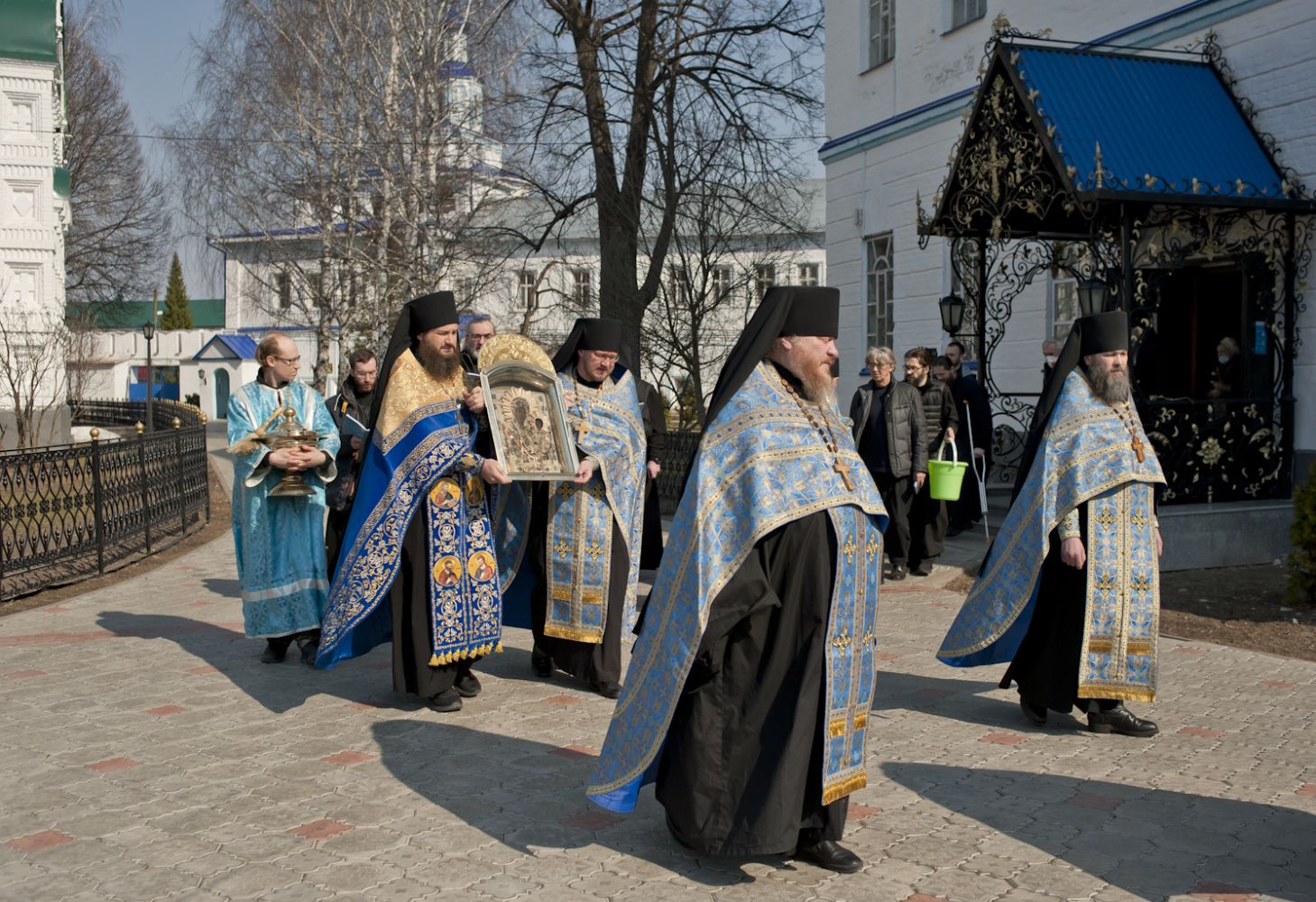 В день Похвалы Пресвятой Богородицы в обители совершен молебен и крестный ход со святыней обители — иконой Божией Матери «Грузинская» — внутри монастырской ограды.Во время крестного хода территория обители окроплялась святой водой. Фоторепортаж Эдуарда Закирова.